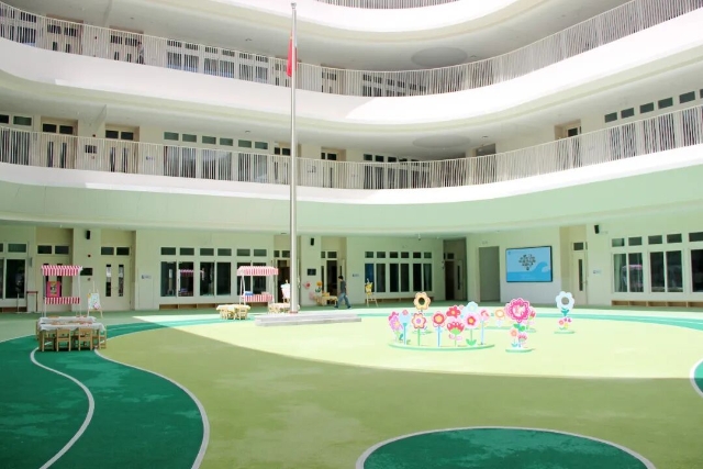 Songqin Kindergarten is the fourth public kindergarten in Hengqin. Guided by its philosophy of "With a child's heart, building a bridge of dreams," the kindergarten is located east of Qianxi Road and south of Aiqin Road. The campus covers 6,900 square meters, with a building area of about 12,405 square meters.