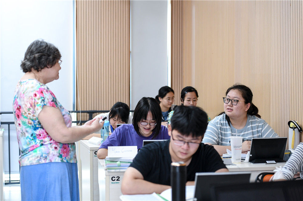 在深圳北理莫斯科大学,学生在上俄语课时回答老师提问(9月28日摄)。新华社记者 毛思倩 摄